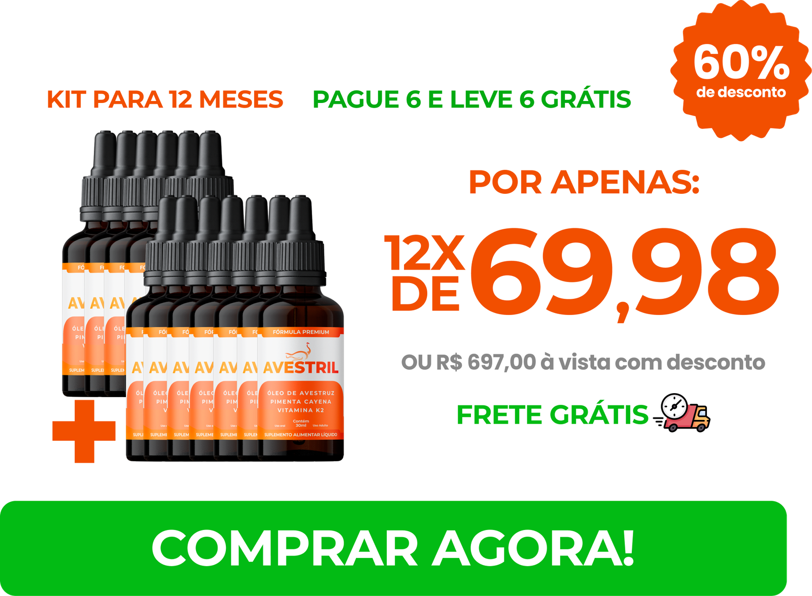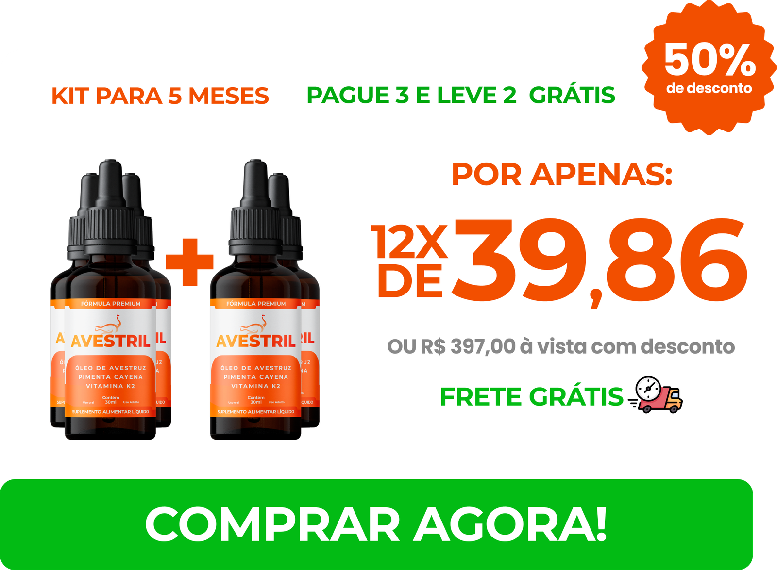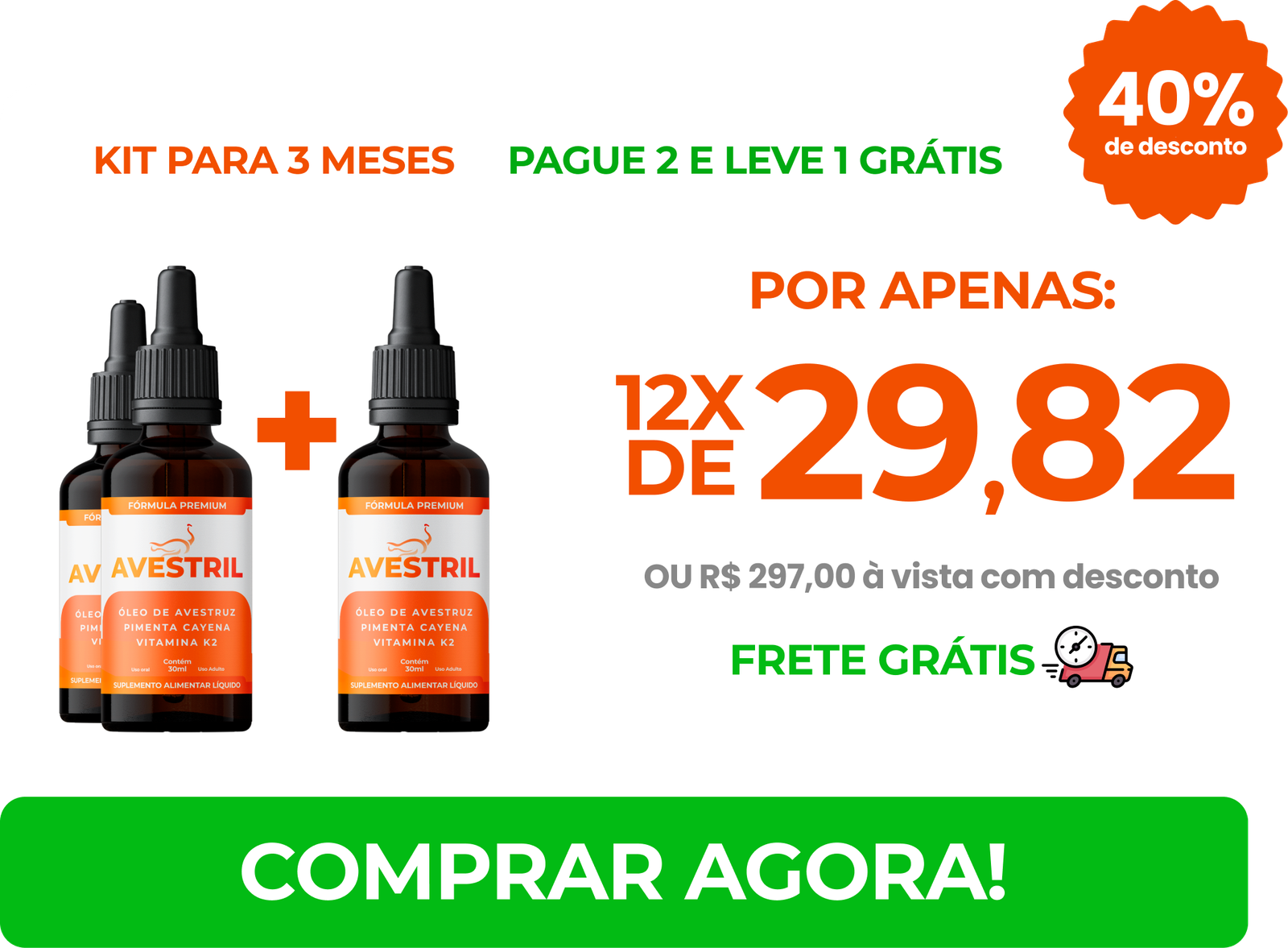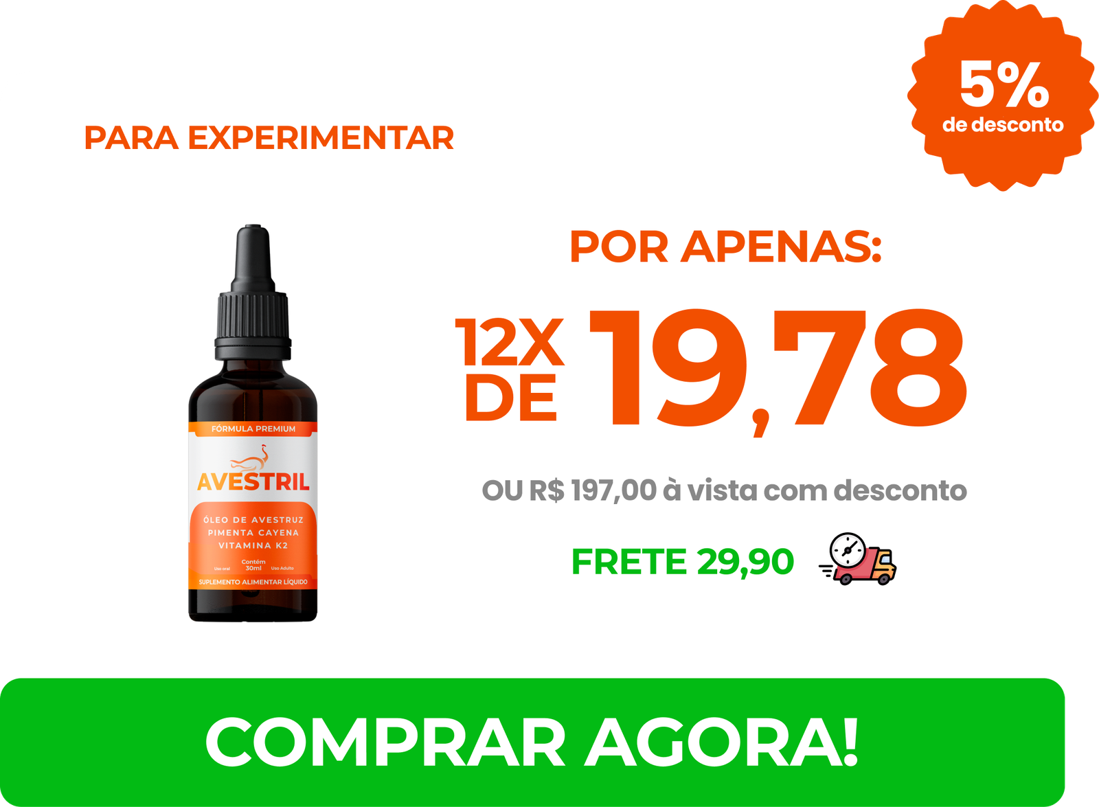 "A poderosa fórmula a base de óleo de avestruz trouxe resultados rápidos em nossos testes, o Avestril é a solução ideal para dores articulares. Proporciona alívio duradouro e elimina de vez o desconforto nas articulações. Experimente o Avestril e recupere sua qualidade de vida."